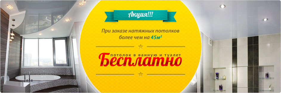 При заказе натяжных потолков от 45 кв.м.*, натяжной потолок в ванную и туалет БЕСПЛАТНО**